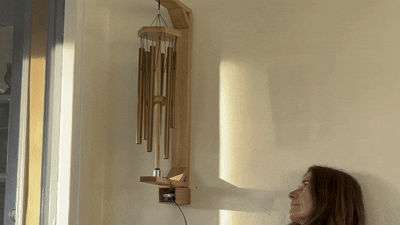 Chime is an ambient communication device that uses sensor technology and electromagnets to create a poetic, non-digital way for people to connect across distance. When one person touches a sensor in their location, it triggers a gentle wind chime to ring in another person’s space, creating a subtle, beautiful way to say “I’m thinking of you” without the use of screens.