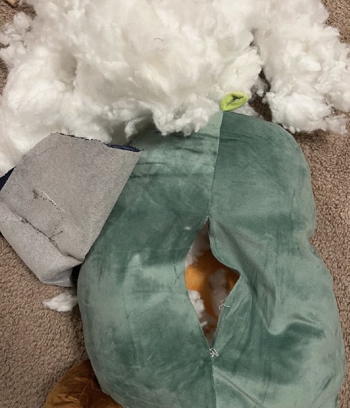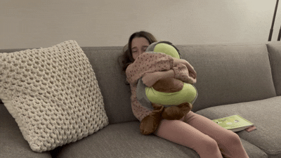 The conductive fabric sensors were sewn into the plush avocado with conductive thread.