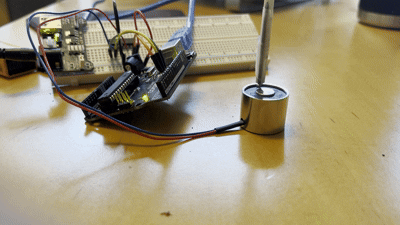 Early Prototyping: testing electromagnet with metal attached to wooden dowel