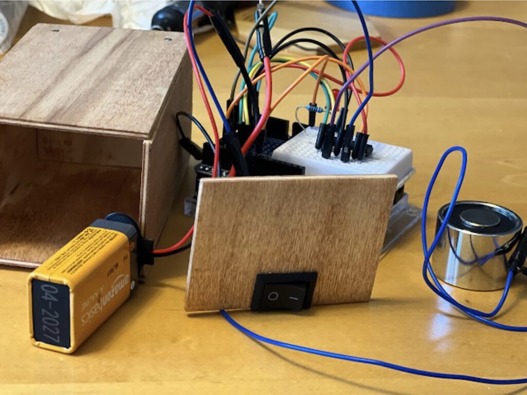 This project presented numerous technical challenges, as this was my first experience with microcontrollers, breadboards, and sensors. I had to learn coding, physical computing, and electromagnet implementation while also using woodworking and sewing skills.