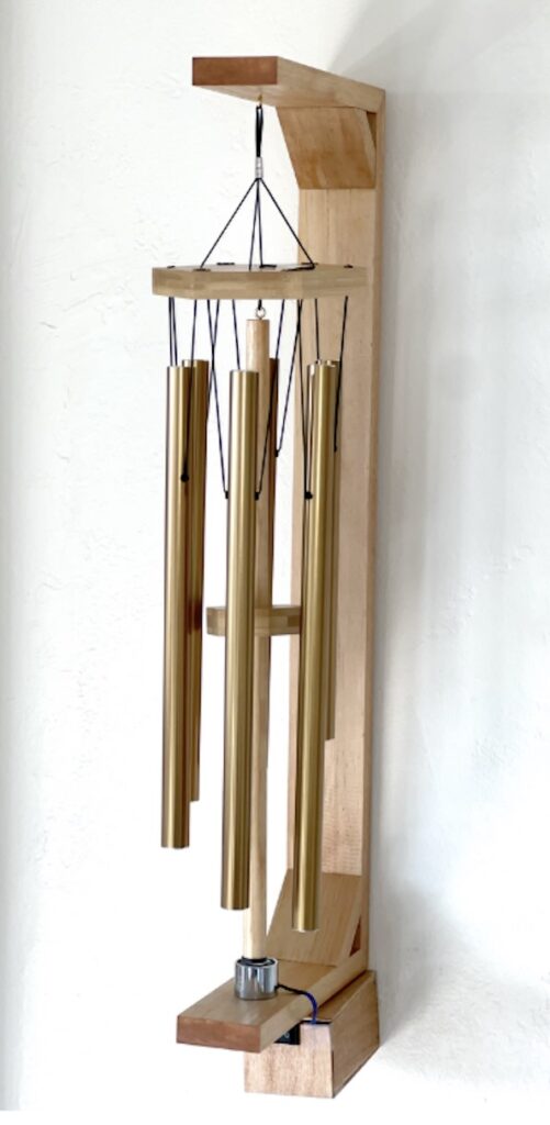 I then constructed a base to hold the windchimes and electromagnet. I wanted it to have a clean, natural aesthetic and chose wood as the main material, which I stained with a light finish.
